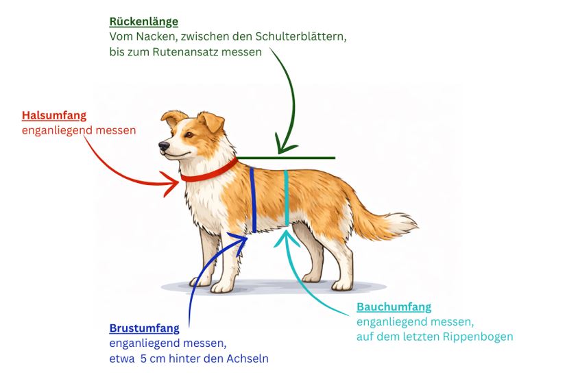 Du bist unsicher, welche Größe dein Hund benötigt? Mit dieser Messanleitung findest du es ganz einfach raus!